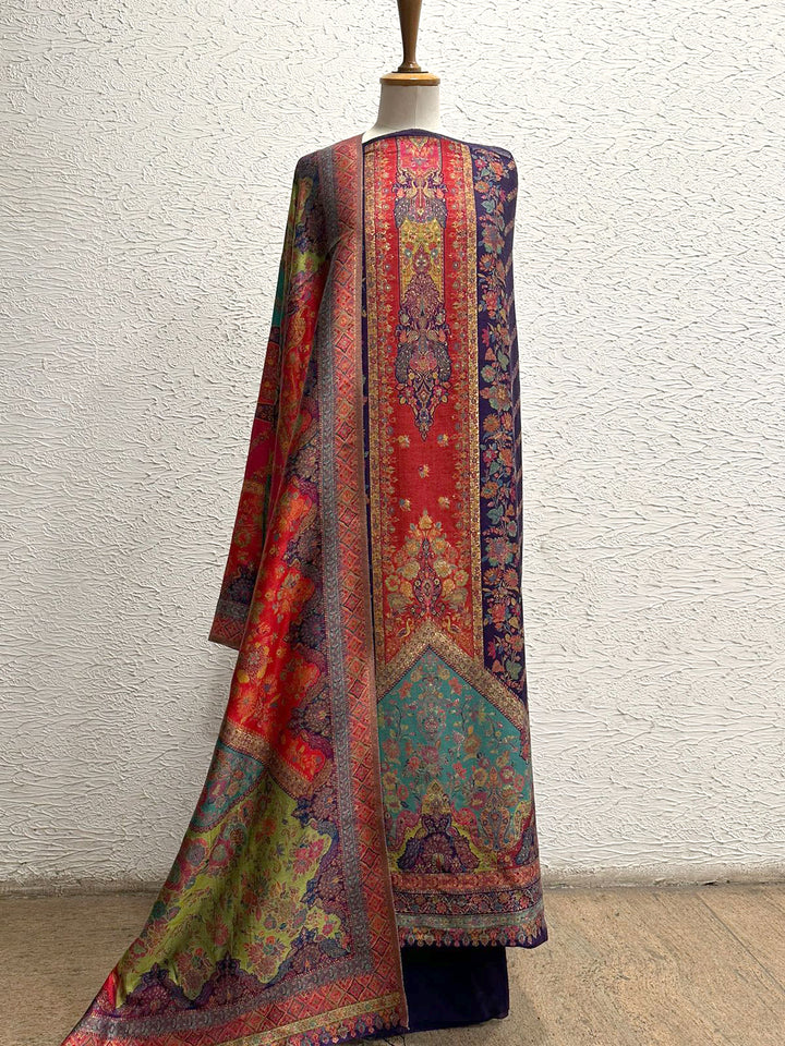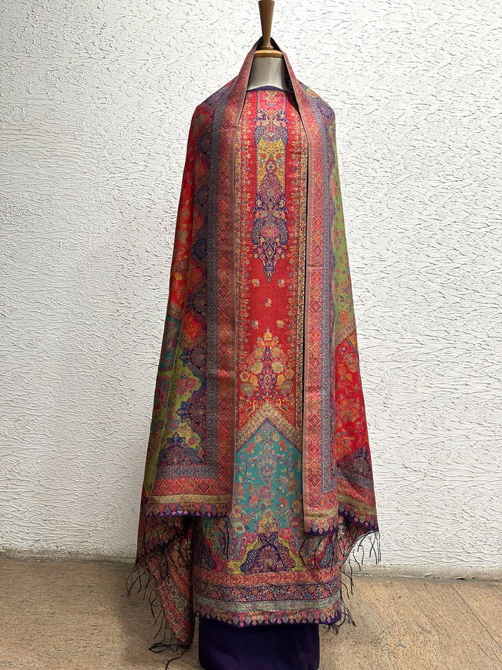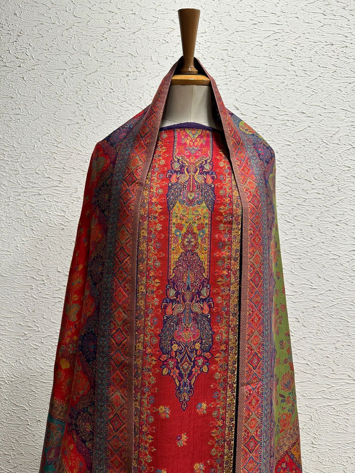 Handwoven silk kaani unstitched 3 piece suit (shirt, trouser & kaani shawl)