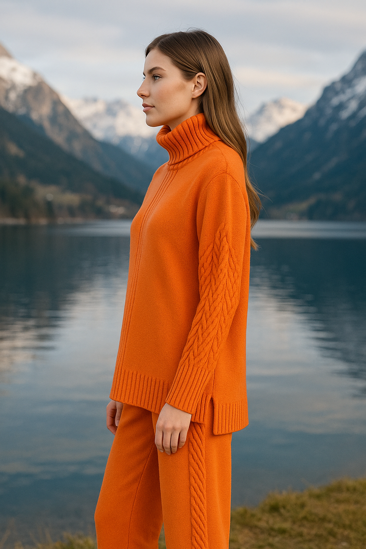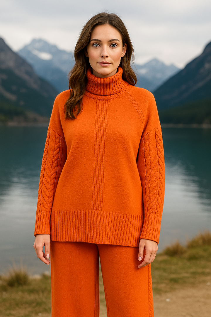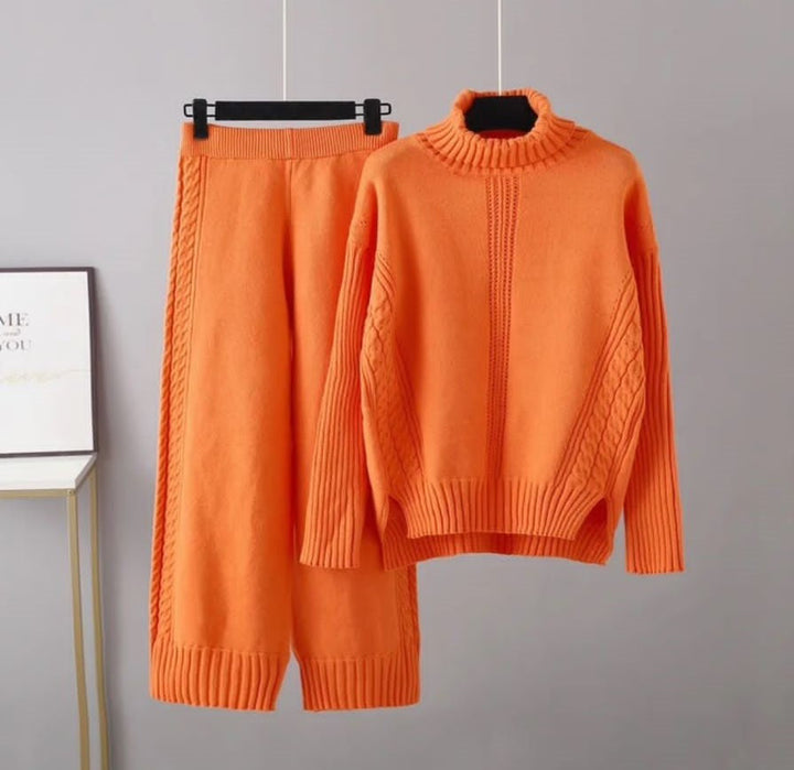 Design Details: High Quality Fit Pullover Co-Ord Set With Long Pants Sweater Women Ribbed Set
