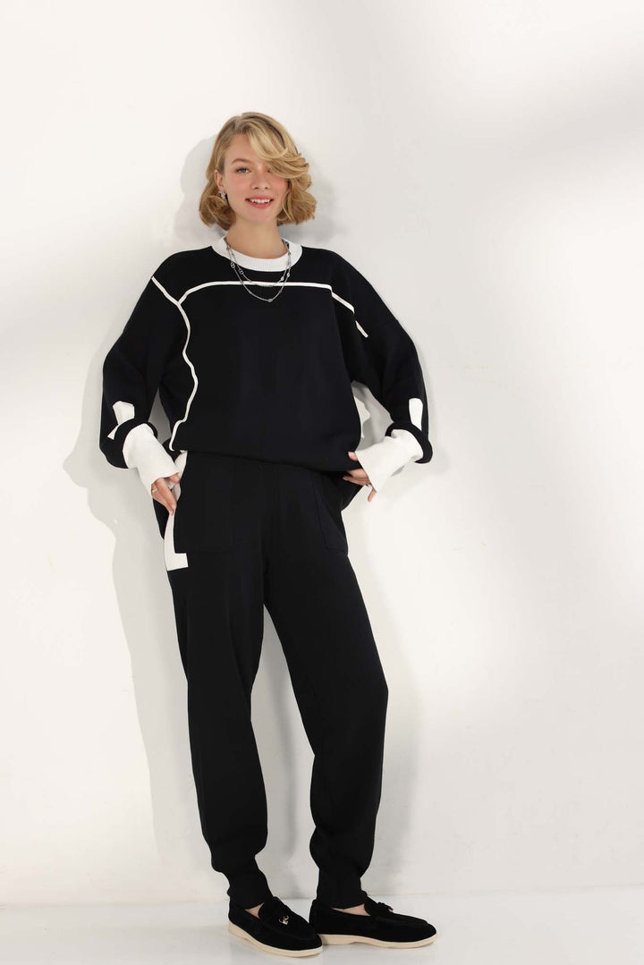 Material: Two-piece woven wool knitwear co-ord set.
