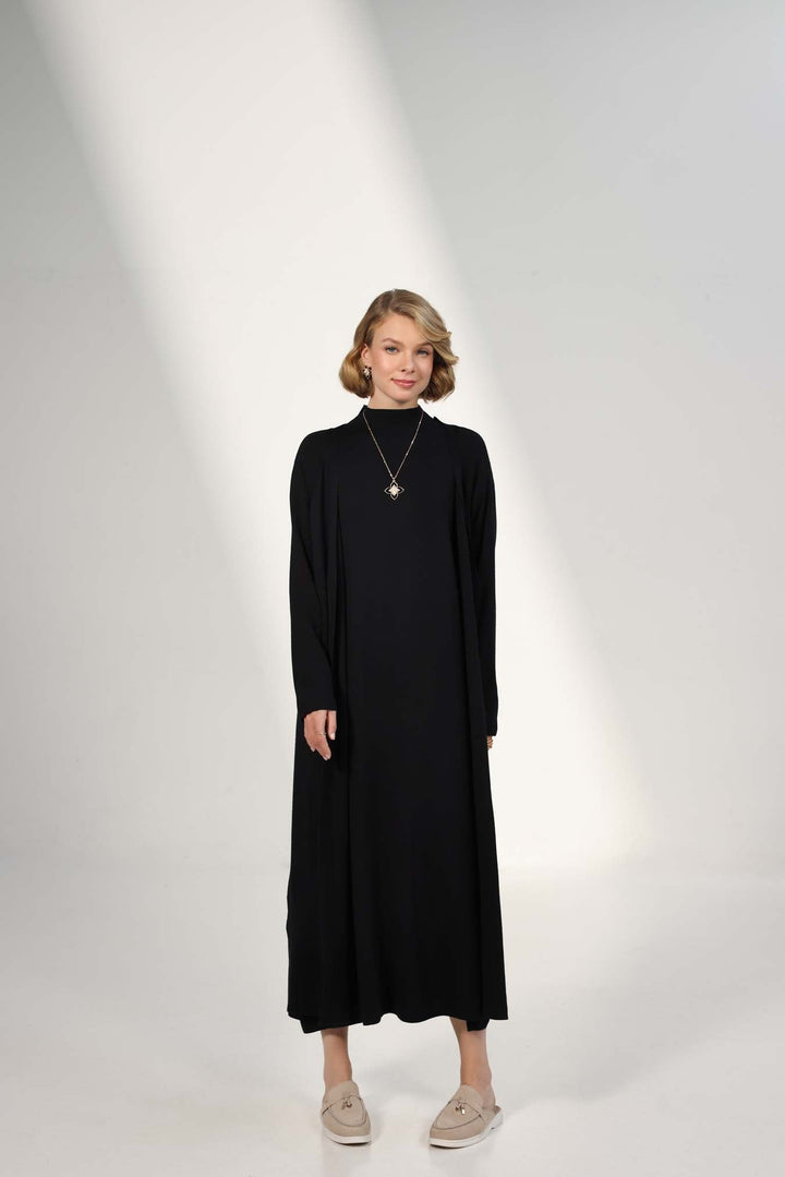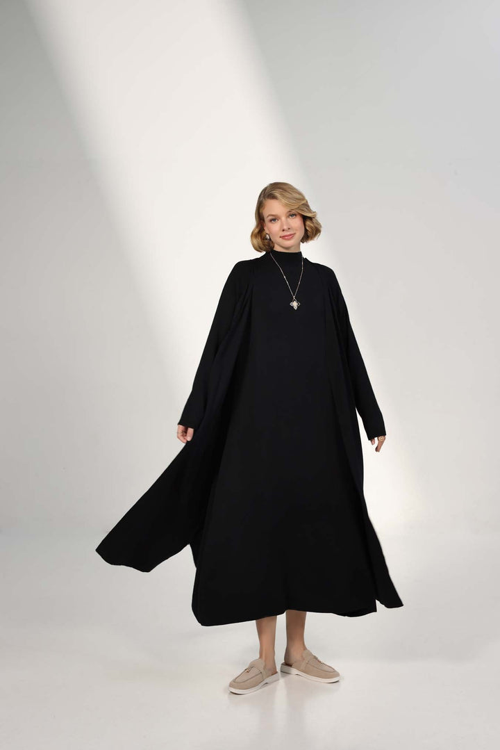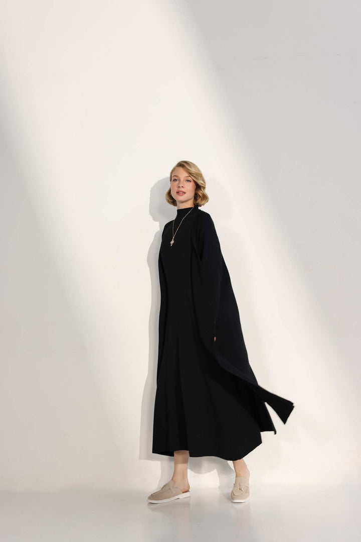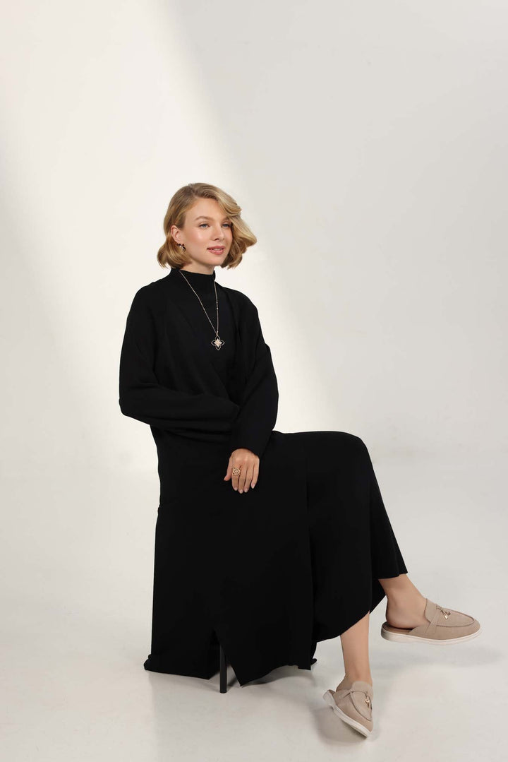 Material: Two-piece woven wool knitwear dress with woven wool knitwear cardigan