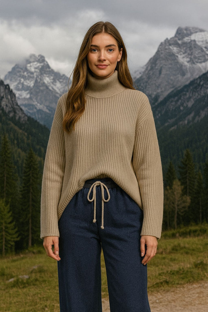 Pull over knit wear sweater with wide leg pants