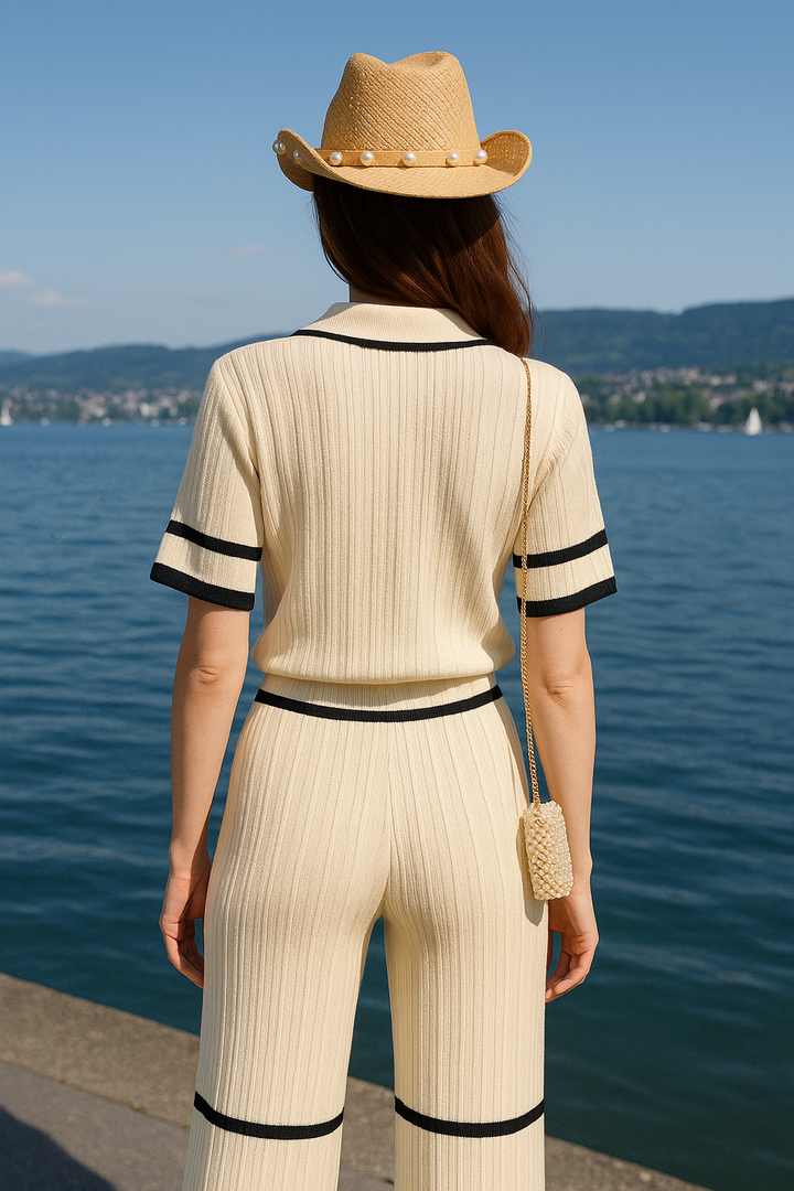 This  white knitted co-ord set is a chic and cozy ensemble designed for effortless style and comfort during spring seasons. This two-piece set includes a matching top with collar and bottom crafted from premium quality knit, ensuring  softness, and durability. Perfect for lounging at home, casual outings, or even layering for a stylish  look.
